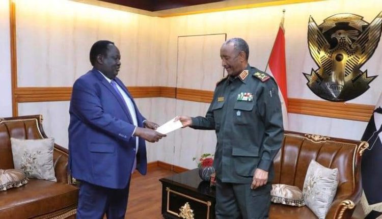 تسلم رئيس مجلس السيادة الإنتقالي الفريق أول ركن عبدالفتاح البرهان اليوم رسالة خطية من رئيس جمهورية جنوب السودان سلفاكير ميارديت، تتعلق بالعلاقات الثنائية وسبل دفع آفاق التعاون المشترك. سلمها له اليوم المستشار توت قلواك مستشار الرئيس للشؤون الأمنية.