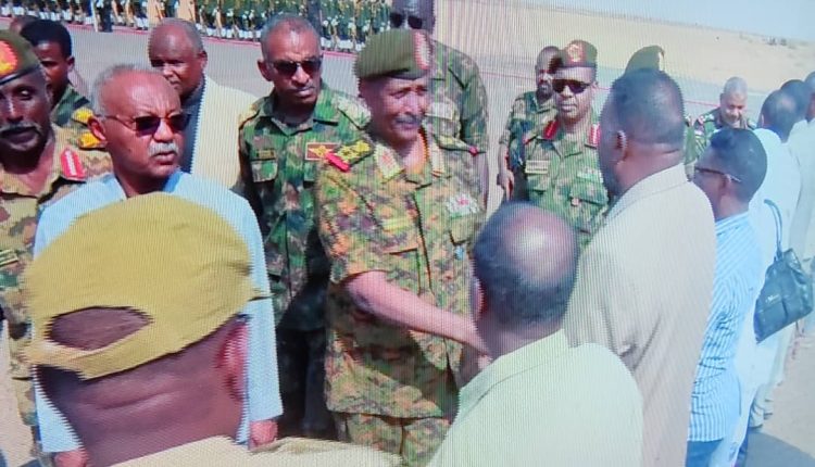وحيا قائد الجيش مواطني دنقلا الذين تدافعوا في عفوية للترحيب به وهم يهتفون “جيش واحد شعب واحد”.