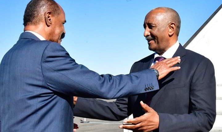 توقف رئيس مجلس السيادة الانتقالي الفريق أول ركن عبدالفتاح البرهان بمطار أسمرا فى طريق عودته من جيبوتي.