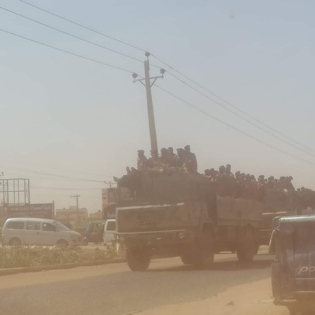 تزامناً مع دعوات للتظاهر.. ناشطون يتداولون صوراً لقوة عسكرية تتجه إلى شمال الخرطوم بحري